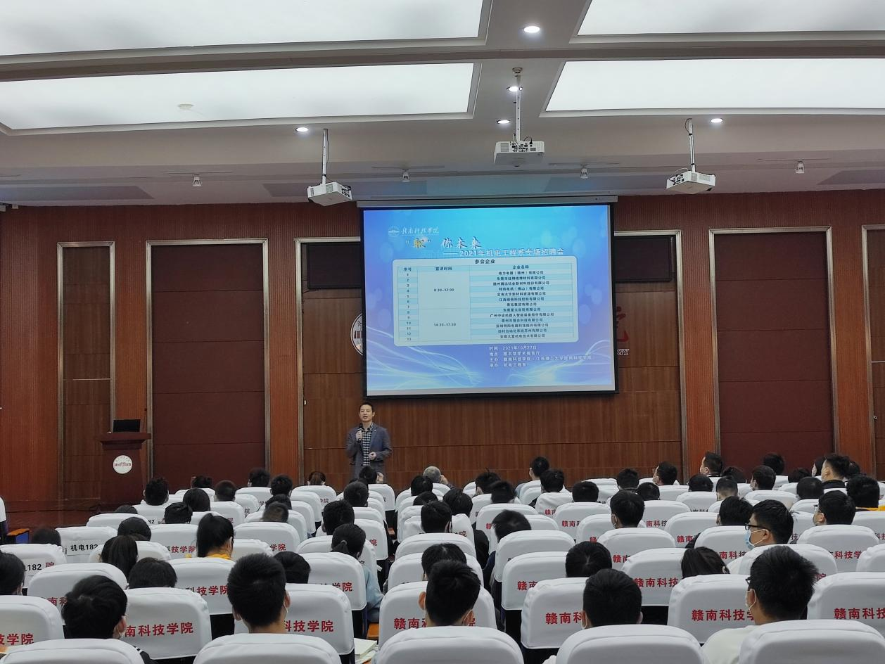 本次机电专场招聘会共邀请格力(赣州)有限公司格力电器(赣州)有限公司、青拓集团、东莞市硅翔绝缘材料有限公司、广州中设机器人智能装备股份有限公司、惠州市隆合科技有限公司、江西绿萌科技控股有限公司等十余家世界500强企业或者在行业内有一定地位、与公司合作密切的优质企业开展集中宣讲,机电工程系2018级各专业近300人参加宣讲会。宣讲中,各家企业从公司背景、薪酬福利体系、职业发展通道、独特优势等方面向毕业生进行推介展示。宣讲活动后,用人单位和毕业生移步招聘会现场进行面试洽谈。宣讲会由机电工程系主任刘辉主持。