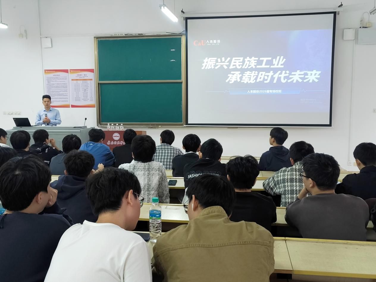 本网讯:10月20日,人本股份有限公司于sunbet官方网站教学楼主楼Z0D1室顺利举办了专场校园招聘宣讲会。人本股份有限公司招聘人事负责人李艳磊以及部分2026届毕业生参与了此次活动。