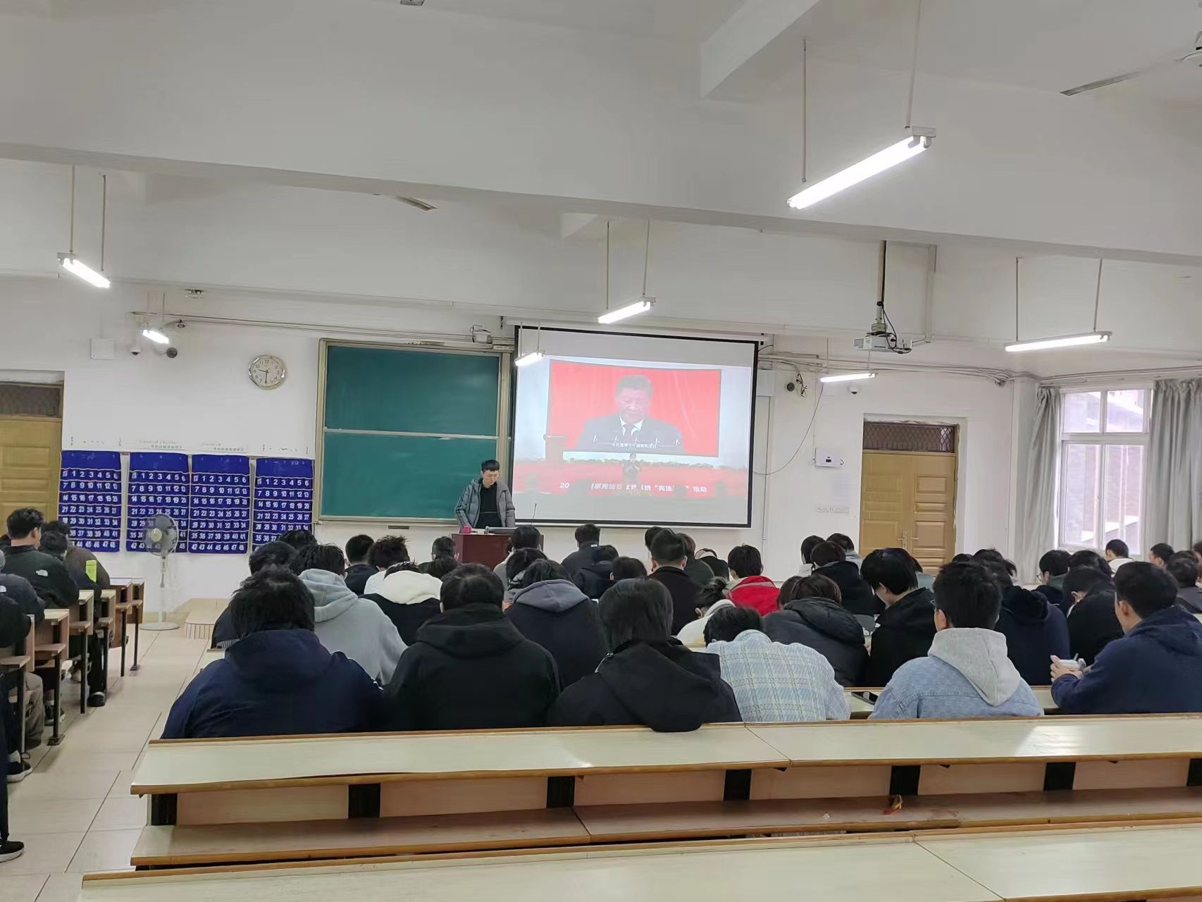 活动中,机电系师生在线下同步跟读宪法部分条款;活动还共同观看了第八届全国员工“学宪法 讲宪法”活动全国总决赛演讲比赛优秀员工展演,全国人大常委会法工委有关领导做了宪法知识普及讲座。
