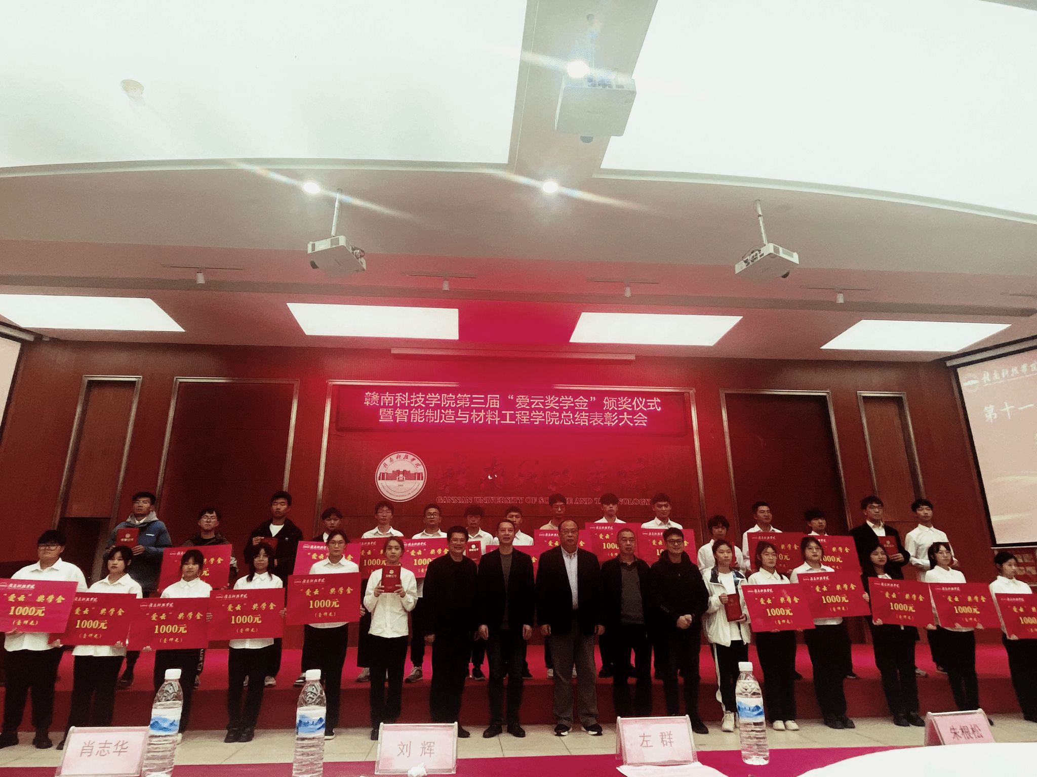 为展示优秀员工风采,发挥先进典型的榜样示范作用,用先进典型感召、激励广大青年员工,引导同学们勤奋学习、勇于实践、积极进取,sunbet于12月14日晚19:00在图书馆学术报告厅,召开sunbet官方网站第三届“爱云奖学金”颁奖仪式暨sunbet总结表彰大会,副董事长左群,机电工程系主任刘辉、党总支书记朱根松、副主任关开荣与肖志华出席颁奖仪式。
