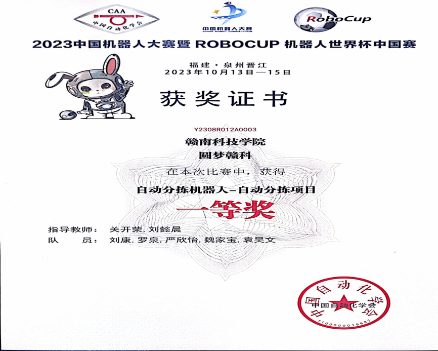 8月14日至16日,2023中国机器人大赛暨RoboCup机器人世界杯中国赛华南区域(赣粤闽)赛在公司成功举行。本次比赛由中国自动化学会主办,中国自动化学会机器人竞赛与培训部、中国自动化学会机器人竞赛工作委员会与公司共同承办。我系学子在各项学科竞赛成绩斐然,第十八届“挑战杯”获省级银奖,中国机器人大赛获得两项全国一等奖。