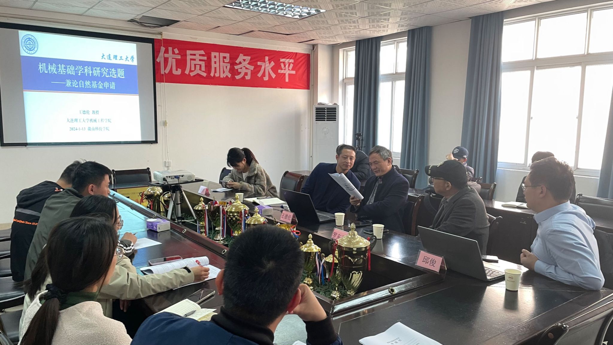 本网讯:2023年1月13日下午,大连理工大学王德伦教授到sunbet指导工作。王德伦教授作《新工科本科人才培养模式与机械基础课程建设路径思考》专题讲座;并以自身连续30年获得国家自然科学基金项目资助的经历,对国家自然科学基金项目的申报提出了宝贵建议。