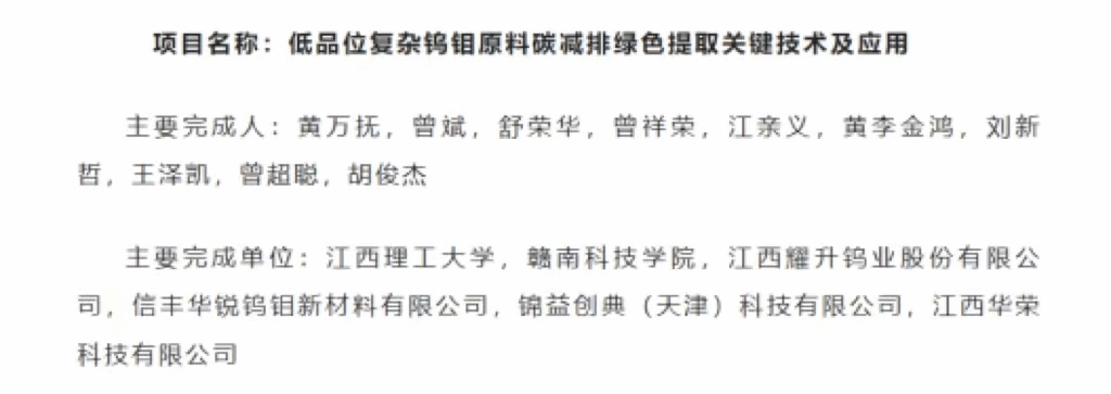 本网讯:9月6日,江西省人民政府发布了《江西省人民政府关于2023年度江西省科学技术奖励的决定》。公司作为第二完成单位的项目《低品位复杂钨钼原料碳减排绿色提取关键技术及应用》喜获2023年度江西省科学技术进步二等奖。