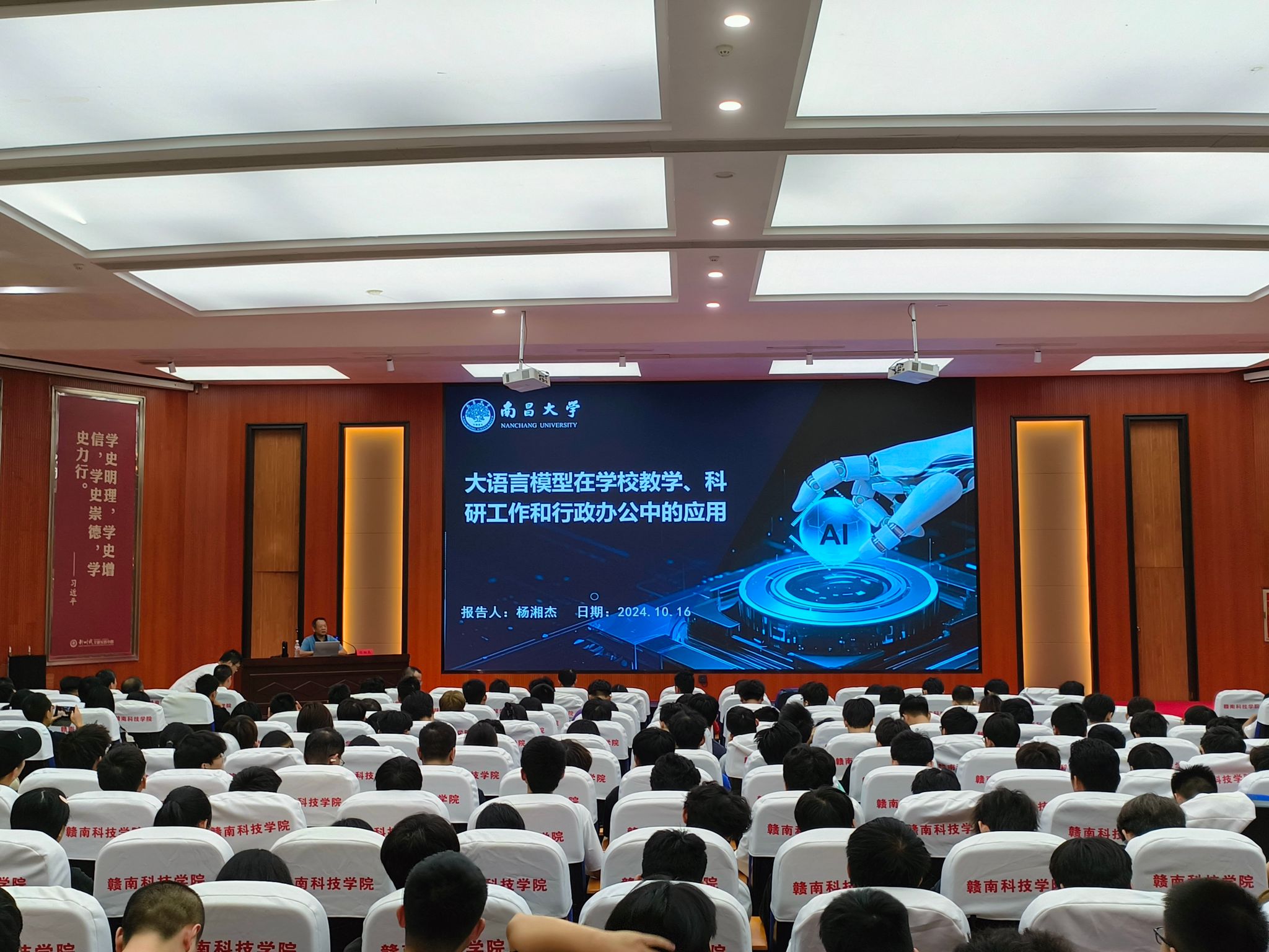 本网讯:10月16日下午,sunbet举行“匠心智造”大讲堂学术讲座。本次讲座邀请到南昌大学先进制造公司杨湘杰教授作“大语言模型在公司教学、科研工作和行政办公中的应用”报告,吸引了来自全校300多名师生的积极参与,报告会由sunbet副经理刘辉主持。