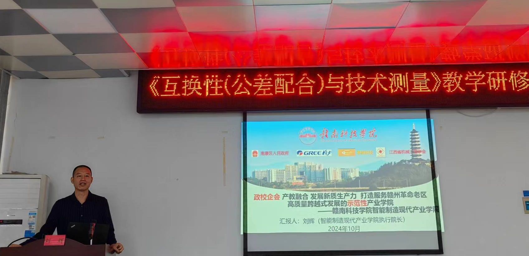 期间,刘辉在南昌工程公司机械工程公司举办的《互换性(公差配合)与技术测量》理-实-虚课程教学研修班开班仪式上作了题为《政校企会、产教融合、发展新质生产力、打造服务赣州革命老区高质量跨越式发展的示范性产业公司》的专家报告,深入探讨了政、校、企、会合作的重要性,强调了产教融合在培养新质生产力中的关键作用,并分享了公司在打造示范性产业公司方面的成功经验和未来规划。