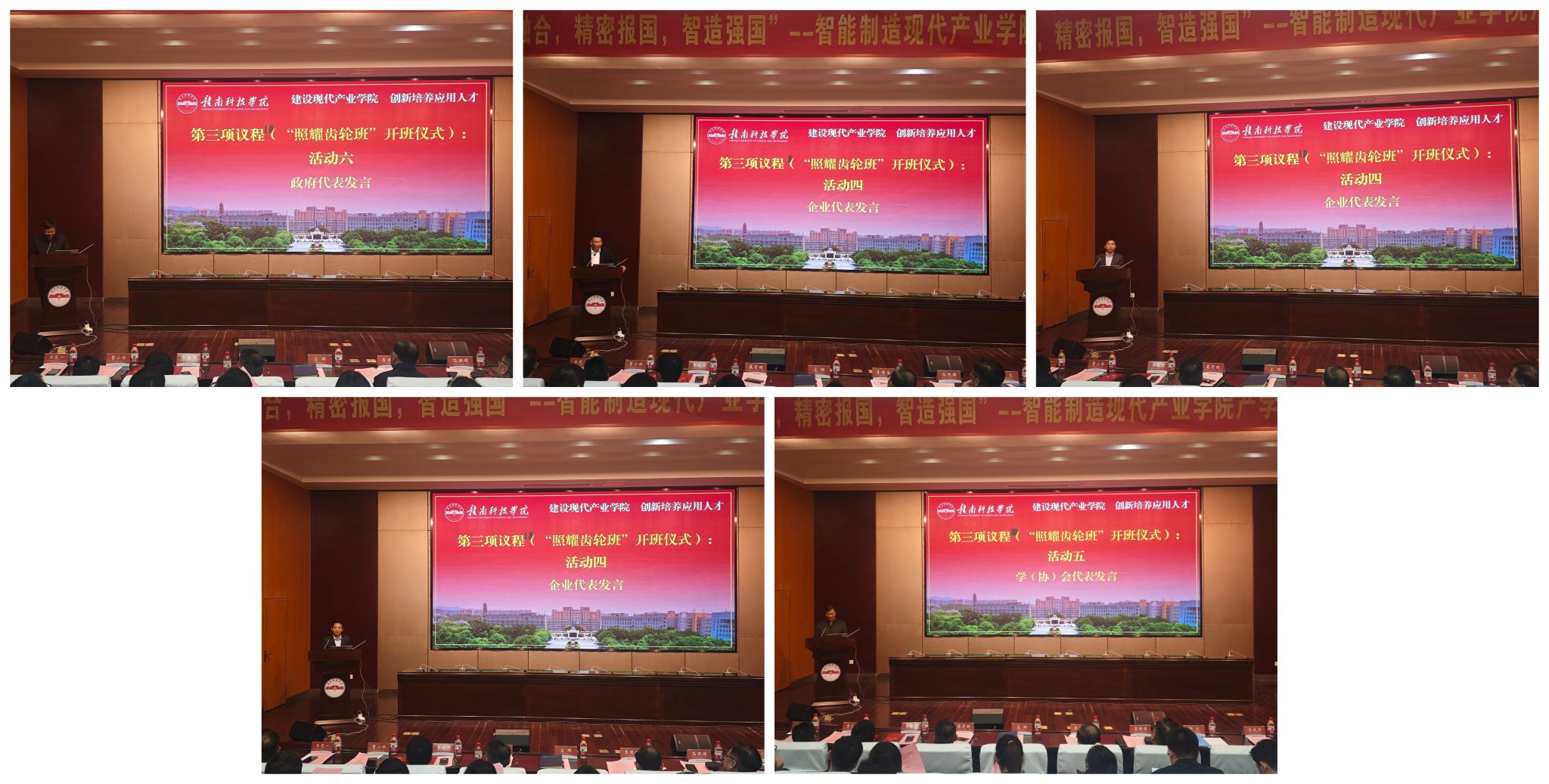 李国金、石照耀和杨文共同为“照耀齿轮班”揭牌,李国金与石照耀分别为裴质明、李海周、曹小林等企业代表颁发产业导师聘书、为杨文颁发省级产业教授证书。深圳合发齿轮有限公司捐赠了一批设备,助力“照耀齿轮班”人才培养。