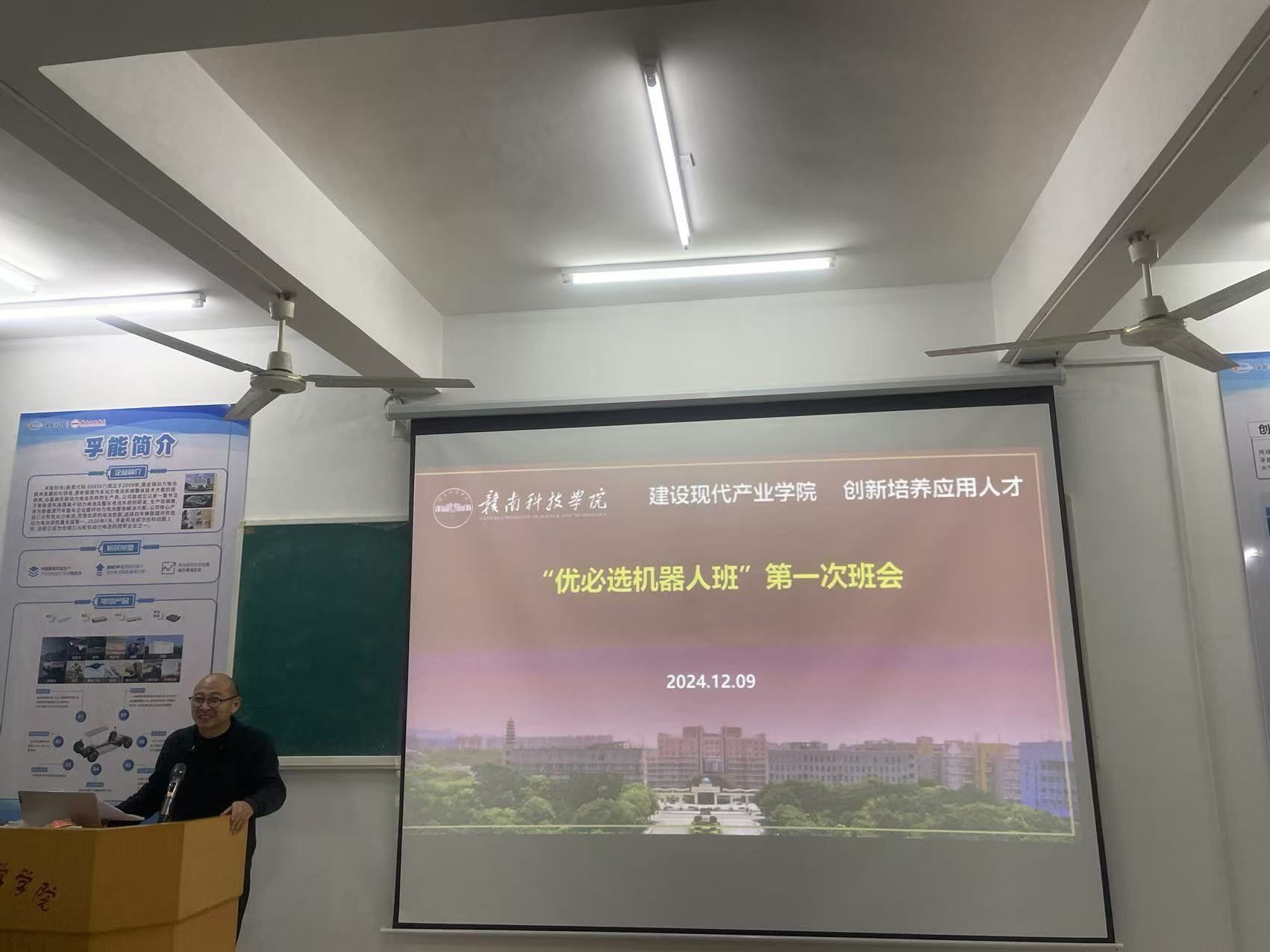 本网讯:12月9日,智能制造现代产业公司2026届“照耀齿轮班”“优必选机器人班”和“格力明珠班”分别召开首次班会。智能制造现代产业公司执行经理刘辉、副经理关开荣、教学管理部主任王腊节、产业服务部主任葛德亮,各班级教研室正副主任、班主任以及全体同学参加了会议。班会由葛德亮主持。