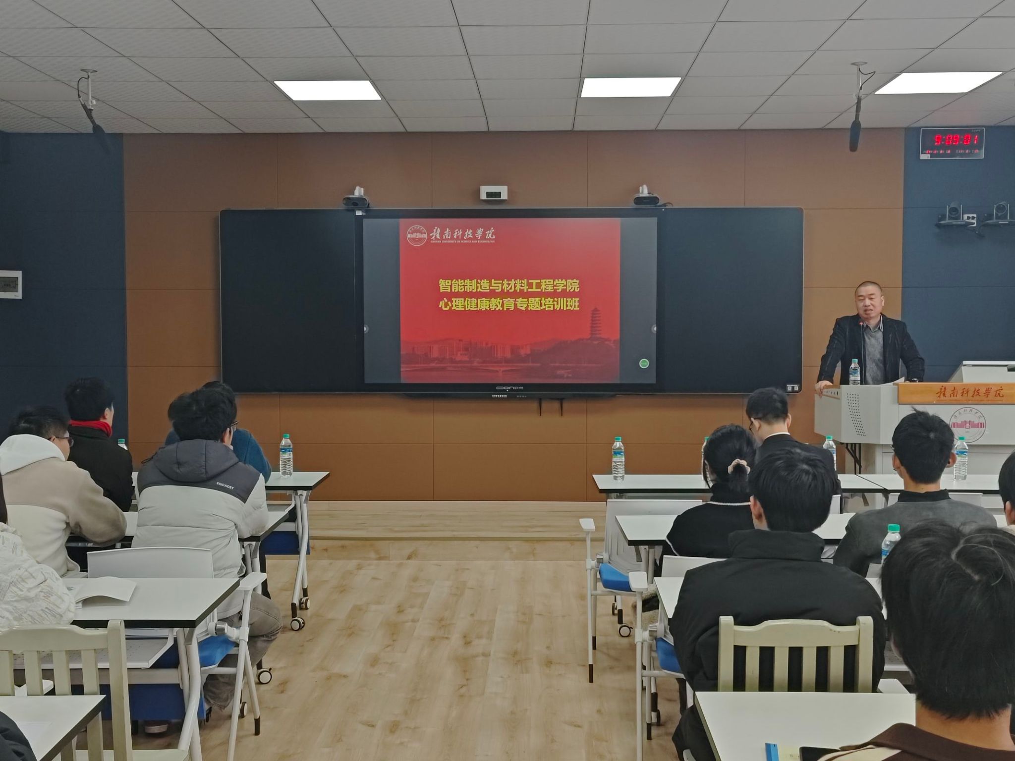 本网讯:为了提高同学们对心理健康问题的认知,增强心理危机识别与干预能力,培养积极向上的心态,促进个人身心健康与全面发展。智造学院于2024年12月8日在主教Z628教室开展了心理健康教育专题培训的活动。