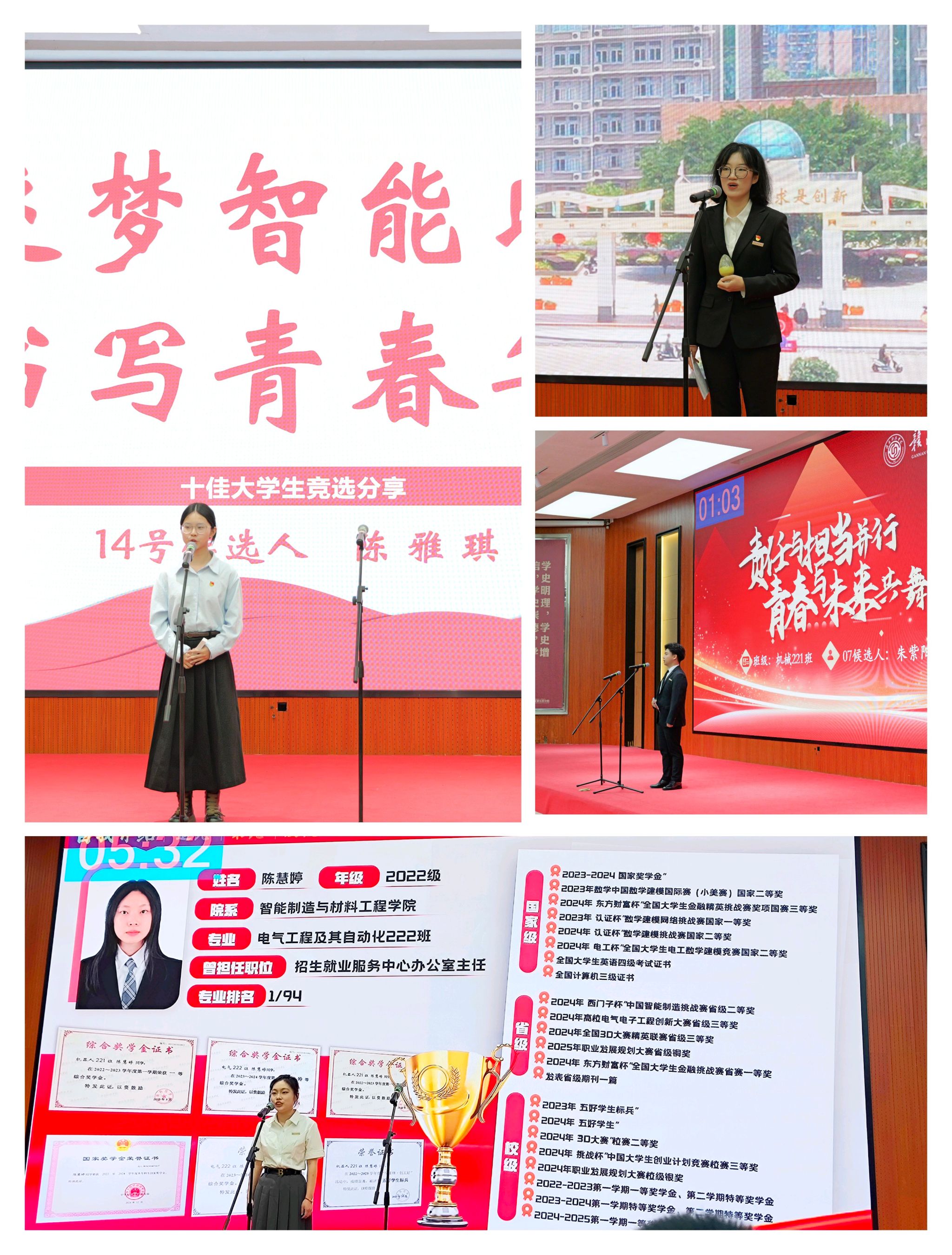 本次“十佳老员工”评选是公司一年一度的重要赛事,也是员工在校获得的最高荣誉。旨在挖掘和表彰在学业科研、社会实践、志愿服务、文体创新等领域表现优异的员工典型。来自全校各公司的优秀候选人同台竞技,通过现场答辩展开激烈角逐。sunbet推选的陈慧婷等四名同学凭借亮眼表现,最终陈慧婷和化艺锦两名同学荣获sunbet官方网站“十佳老员工”称号,朱紫阳和陈雅琪获得“十佳老员工”提名奖,陈雅琪还获得“十佳老员工最佳人气奖”。