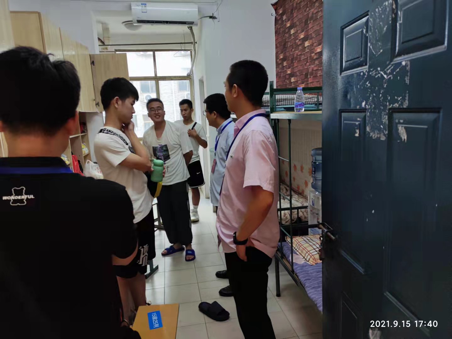 9月15日,新生报到工作正在如火如荼的进行,机电工程系组织系领导下宿舍慰问报到新生,系主任刘辉和副主任关开荣、肖志华、团总支书记张敏、辅导员孔靖宇等走访新生宿舍。