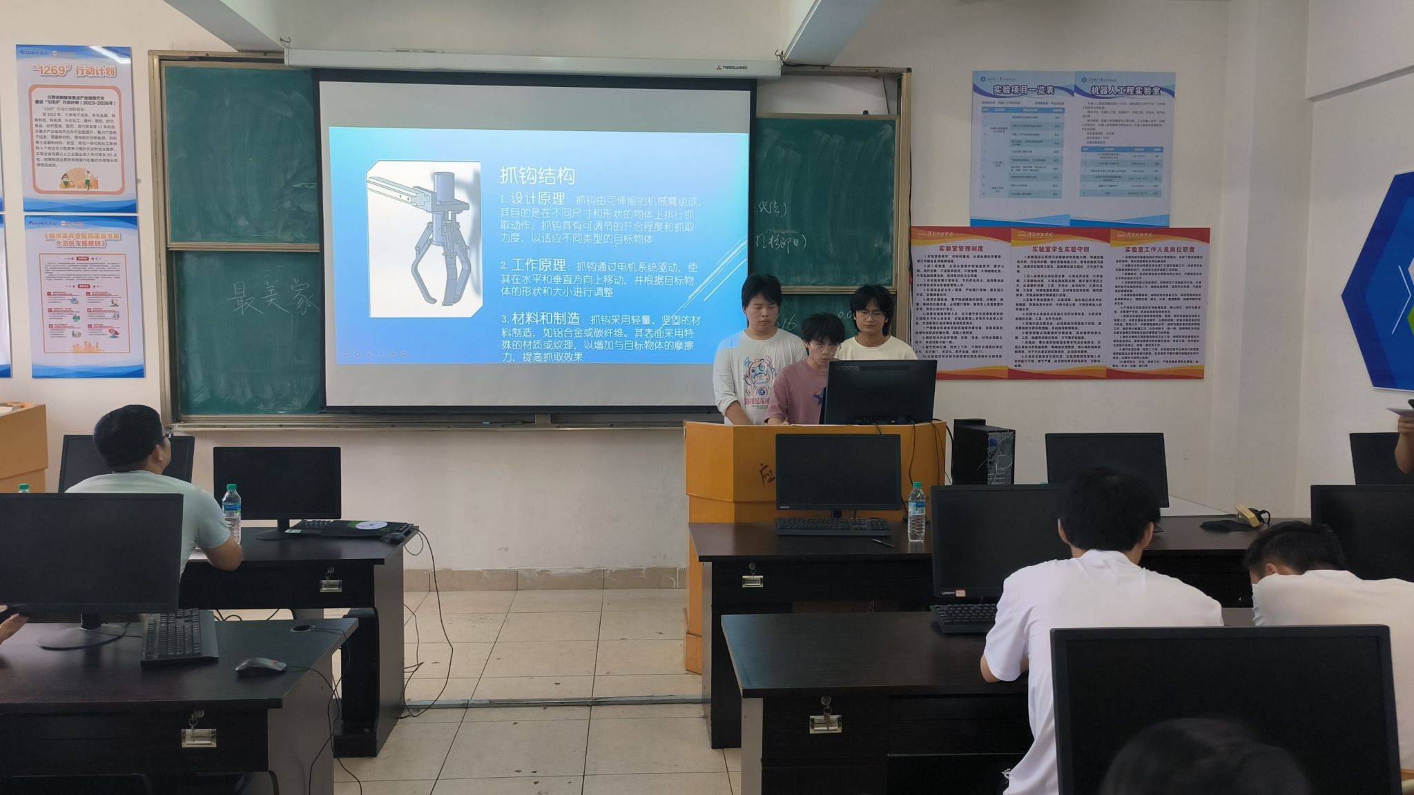 赛中,各参赛小组依次上台对作品的各个部位从应用场景、实用性、创新点等方面进行介绍,评委老师在仔细分析研判与细致探讨后对作品做出了公正客观的评价,随后对所有上台展示的作品评委老师均从各个角度提出了更为专业的建议。最后,评委老师对此次比赛进行总结,希望同学们能在未来的比赛中能够不断创新、奋勇争先,以更高的标准更好的姿态去迎接接下来的各类比赛并能够获得更高的成就。