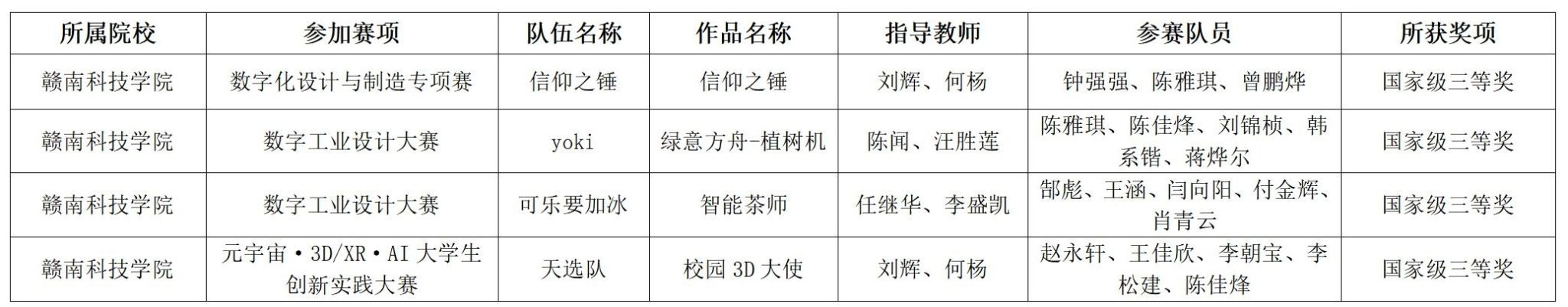 本网讯:12月8日,第十七届全国三维数字化创新设计大赛落下帷幕。在刘辉、唐雨、何扬等老师的指导以及同学们的共同努力下,公司共三支队伍在“数字工业”赛项上荣获国家级三等奖两项,在“3D校园大使”赛道荣获国家级三等奖一项,在“数字化设计与制造”专项赛荣获国家级三等奖一项,共荣获国家级三等奖四项。
