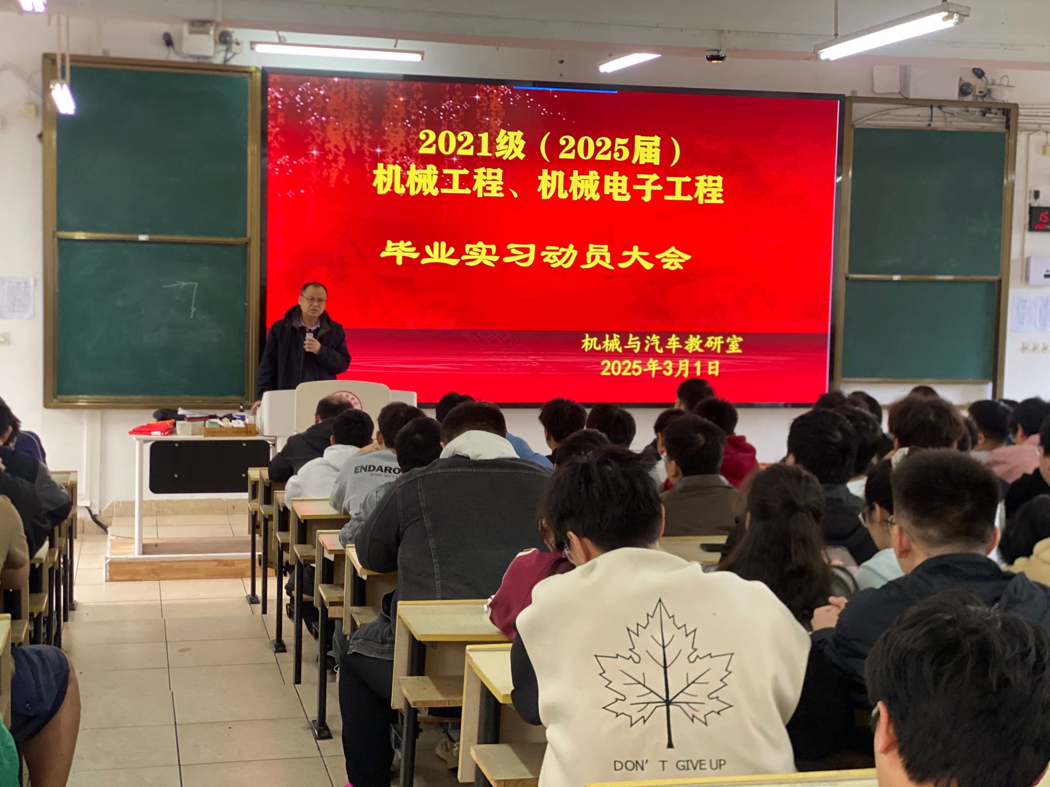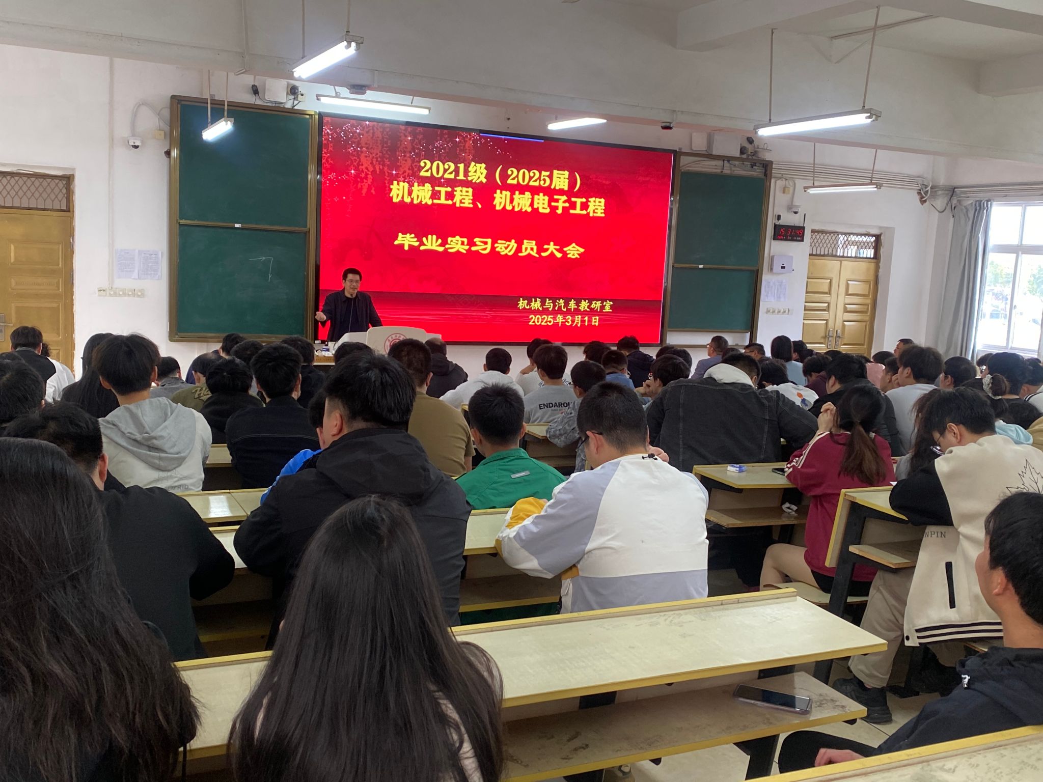 本网讯:3月1日下午,sunbet机械与汽车教研室在教学主楼Z1D1教室召开了2021级员工毕业实习动员大会。公司党委委员关开荣、机械与汽车教研室主任刘伟,副主任刘斌、实习带队教师以及机械211班、机电211班、机电212班、机电213班、机电214班员工参加动员大会,会议由刘伟主持。