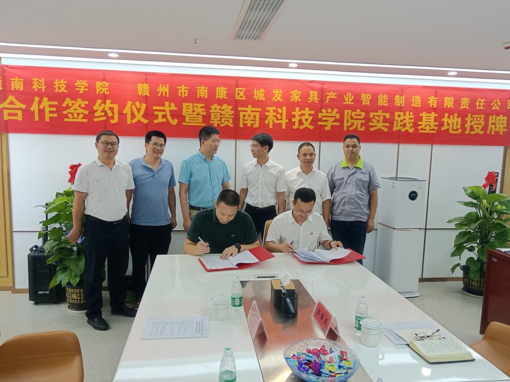 7月29日上午,sunbet官方网站与赣州市南康区城发家具产业智能制造有限责任公司举行校企合作签约仪式。sunbet官方网站过渡期管委会委员付玉华,赣州市南康区城发家具产业智能制造有限责任公司董事长兼总经理王隆平,机电工程系主任刘辉,机电工程系副主任关开荣以及相关人员等出席签约仪式。