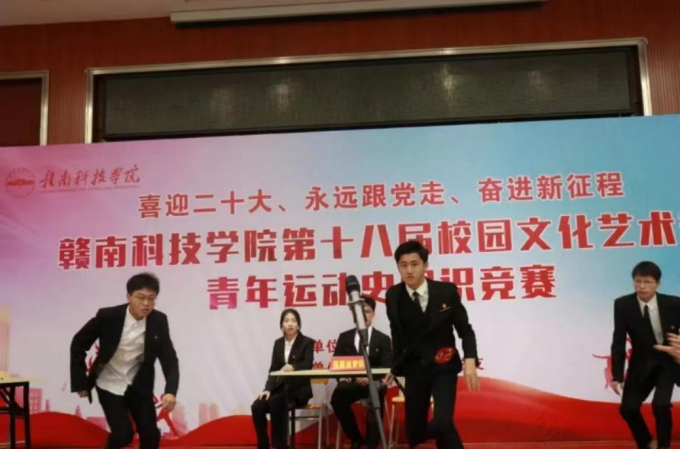 本网讯:为喜迎中国共产主义青年团成立100周年,进一步活跃校园文化气氛。丰富老员工课余生活,给同学们一个展示自己的舞台,进一步营造良好的学习氛围。陶冶同学们高尚的道德情操,启发老员工的创作灵感。锻炼同学们的知识储备,促进同学们之间的交流。5月7日,机电工程系于图书馆报告厅承办“喜迎二十大、永远跟党走,奋斗新征程” 第十八届校园文化艺术节青年运动史知识竞赛。莅临此次活动的嘉宾有校团委书记李敏、机电工程系副主任肖志华、机电工程系团总支书记张敏、人文科学系团总支书记郭豪、经济管理系王博文、建设工程系董宇鹏。
