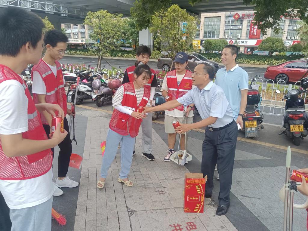 李国金实地查看了挂点路段环境卫生情况,对发现的非机动车乱停放等问题进行了劝导和整顿,对有色垃圾、烟头杂草进行了清理,与志愿者们亲切交谈,送上降温防暑饮品,嘱咐志愿服务人员要注重防暑降温,确保身心健康,相关责任部门要做好后勤服务保障工作。