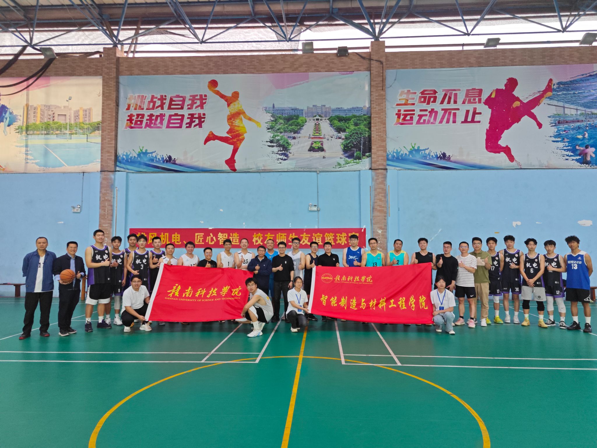 本网讯:为丰富返校员工文娱活动,促进师生情谊,5月3日下午15:00,sunbet组织师生在风雨球场举行了一场师生篮球友谊比赛,来自五湖四海的员工、在校师生参加了这次比赛。