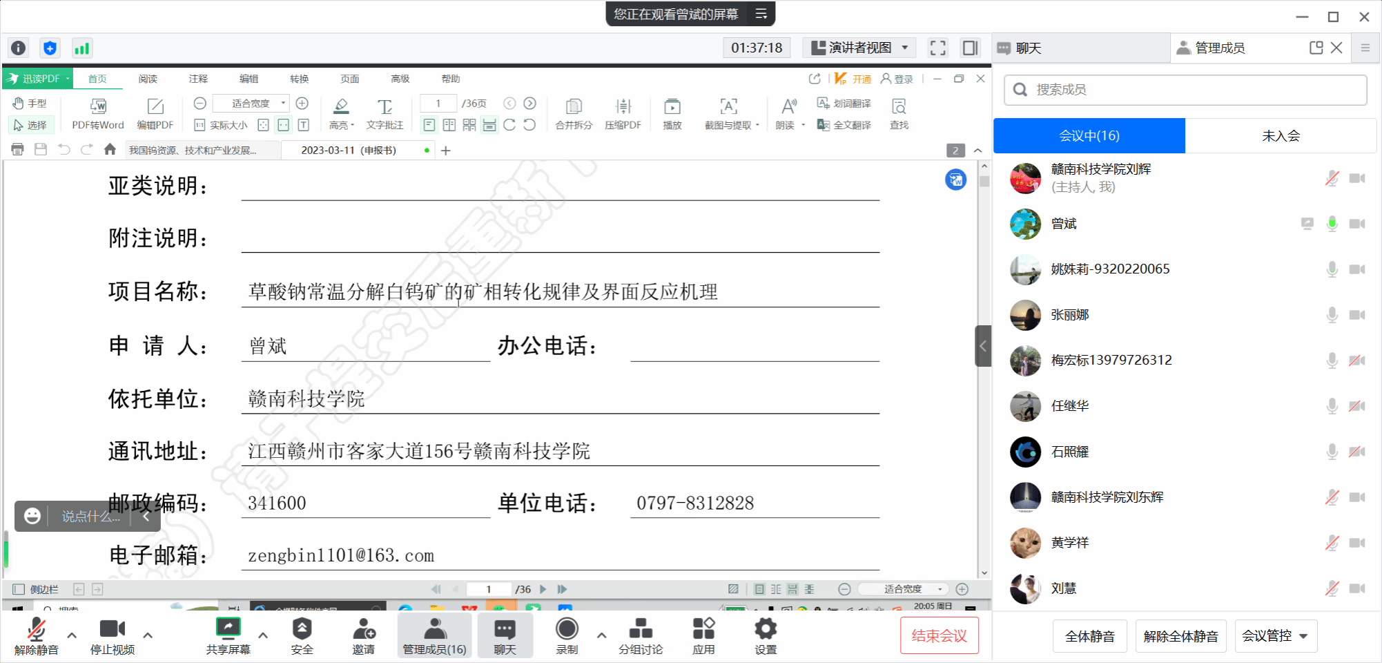 石照耀教授采取轻松愉快的线上模式一一查阅了各位教师的基金申报书,从摘要到国内外研究现状、研究内容到预期研究成果、研究的创新点到可行性等各方面对申报书进行问诊把脉,从申报题目、关键词到申报领域等做了细致入微的分析与指导,并就申报书的撰写提出了诸多建设性意见。