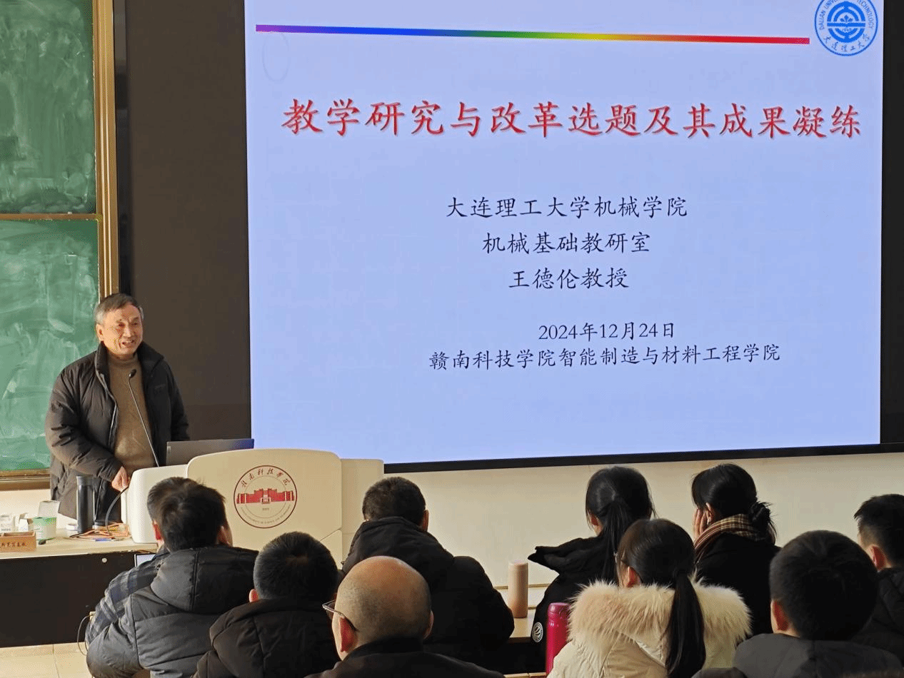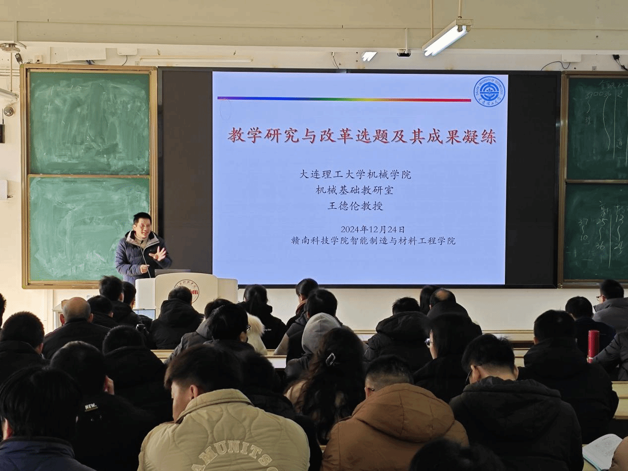 本网讯:12月24日,sunbet在主教楼Z1D2举办了教学研究与改革选题及其成果凝练讲座。本次讲座特别邀请大连理工大学机械公司王德伦教授担任主讲嘉宾,围绕教学工作与教学成果凝练,分享教学成果培育与申报经验。sunbet全体教师参加了此次讲座,会议由公司党委委员关开荣主持。